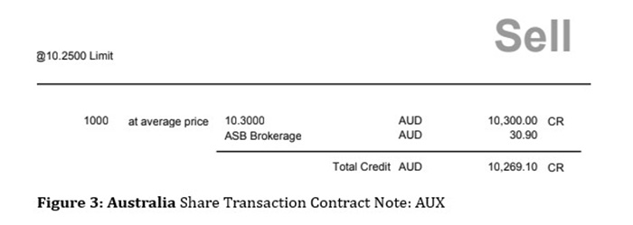 Sri Lanka’s stock trading contract note reads like a mini-budget speech (Figure 1). Meanwhile, most modern markets charge one number. For an ordinary person trying to understand their contract note, it’s nearly impossible to figure out what they’re actually paying and why. Figures 2 and 3 show the stock trading “Sell” contract notes for a New Zealand Stock Exchange transaction and an Australian Stock Exchange transaction, (“Buy” contracts are similar) respectively.